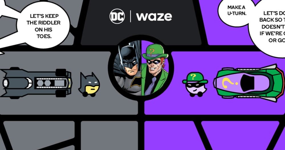 Com parceria com a DC comics, Batman e Charada entram para lista de vozes no aplicativo Waze. O dublador que fez o Batman como a voz do GPS, foi o Kevin Conroy, que é conhecido por ser a voz dos principais papéis de Batman.